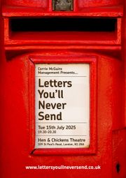 'Letters You'll Never Send' is a live theatre event. An evening of juicy storytelling of revelations, secrets and healthy catharsis, from collected anonymous letters, performed by a bunch of incredible actors.